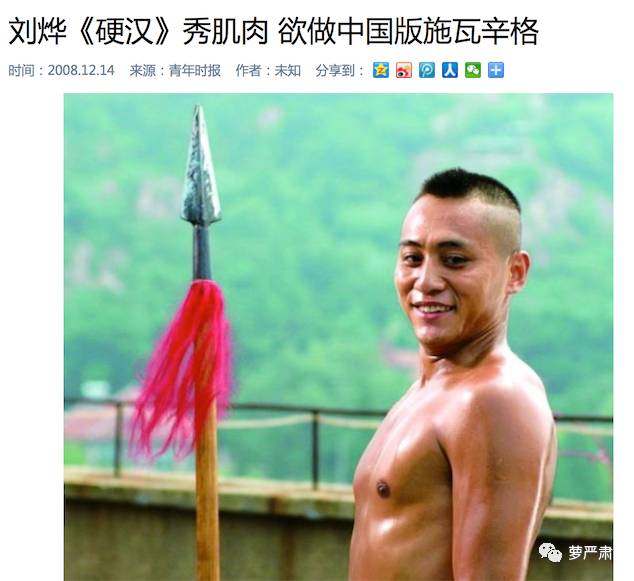刘烨原本的银幕形象是阴郁敏感的,但是从2008年开始他演了一系列所谓的硬汉角色,那时候他的目标变成了中国的施瓦辛格。