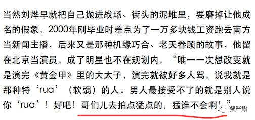 刘烨说过自己最早到北京学表演有一个因素是听说这个行当能挣钱。