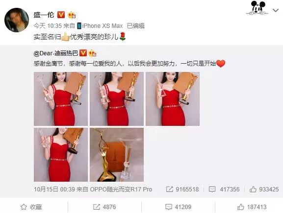 热巴凭借这部戏水了金鹰节,群嘲到热度都过去时,盛一伦却突然转发微博祝福。
