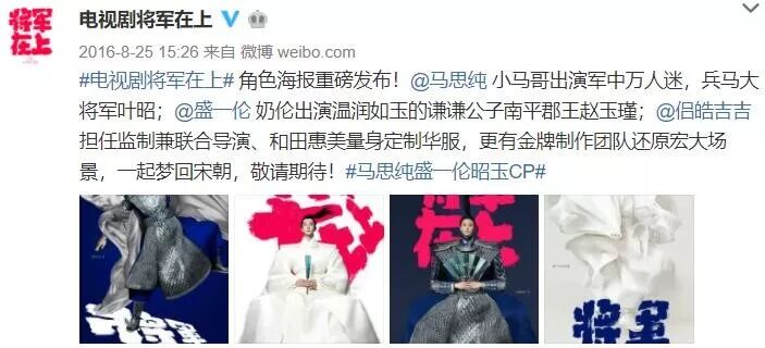从官方微博公布的阵容来看,显然是先定下了导演和艺术团队,再敲定的男女主。