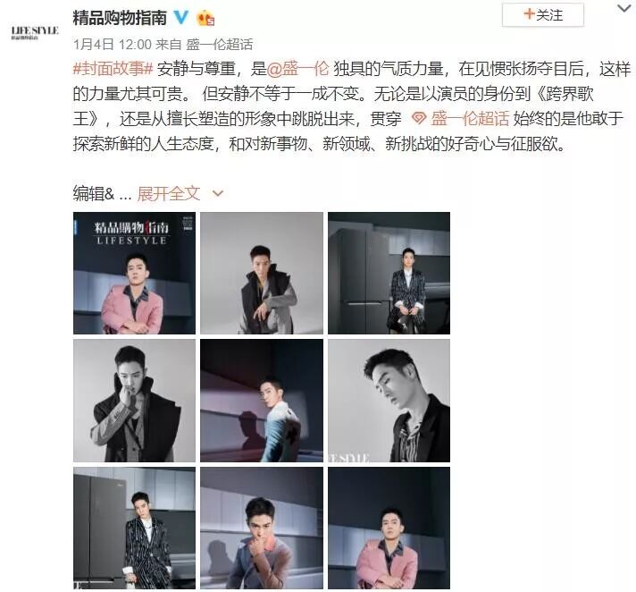 模特出身的盛一伦,在微博上对自己的认证是:男演员,代表作