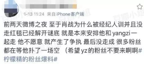 肖战在微博之夜被经纪人训并且没有走红毯,因为不愿跟某小花一起?