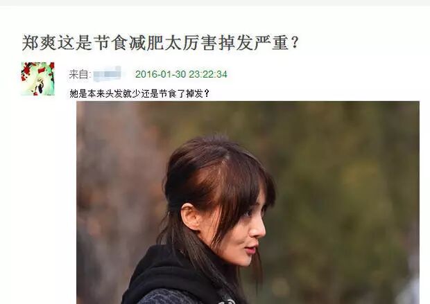 爽妹是典型的热搜体质啊,前段时间为了她减肥瘦成皮包骨的事,各大媒体网站社交网络,轰轰烈烈讨论了几个月