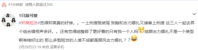 然而对于郑爽短发上热搜这事,更多人的观点是,反感