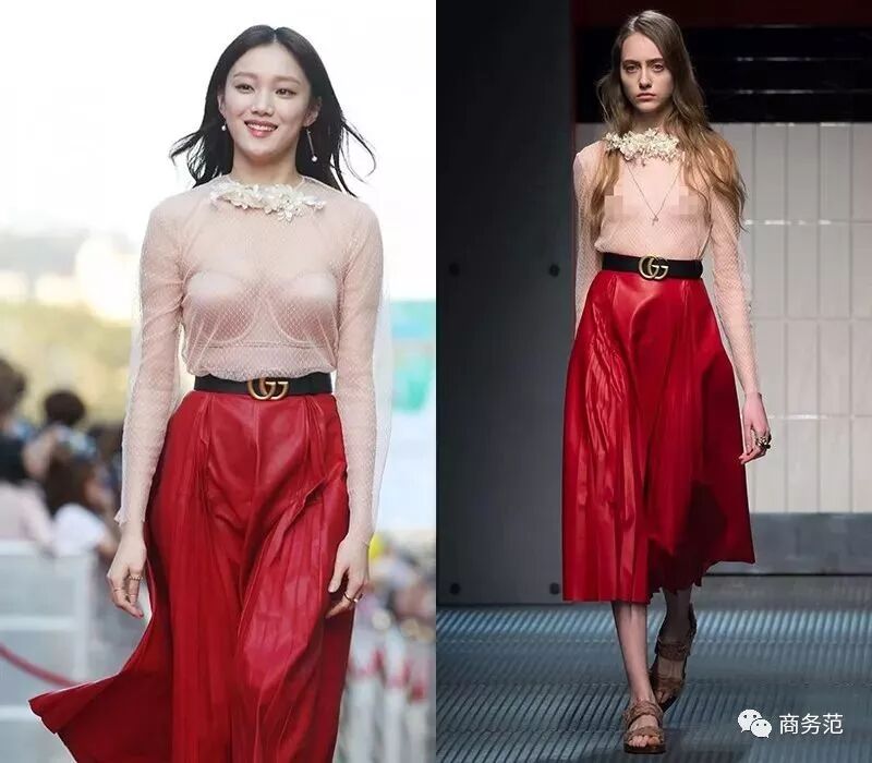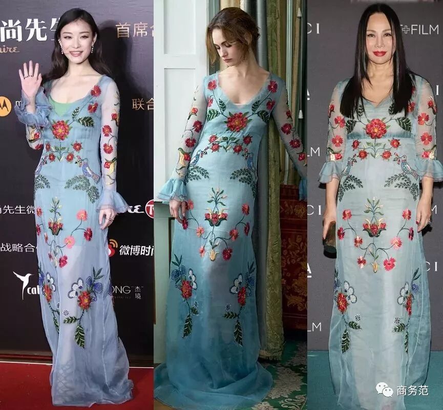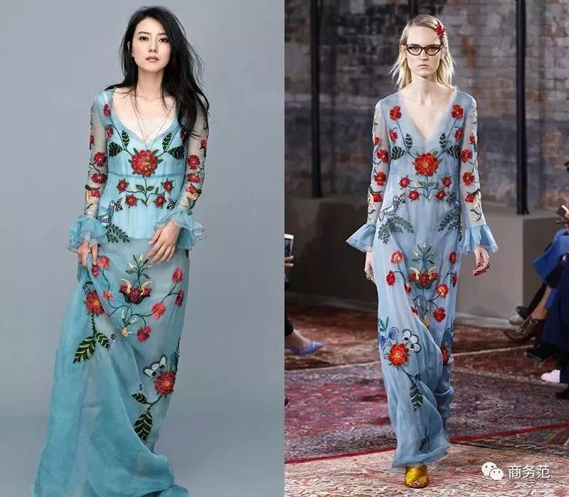 Gucci这两年的透视风可谓是让华语明星们又爱又恨。既觉得它好看又怕穿上太暴露,于是打底开始变得很常见,比如这件V领+透视Gucci连衣裙中外明星都穿上身过。