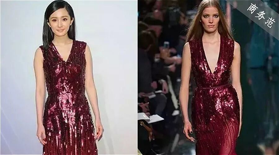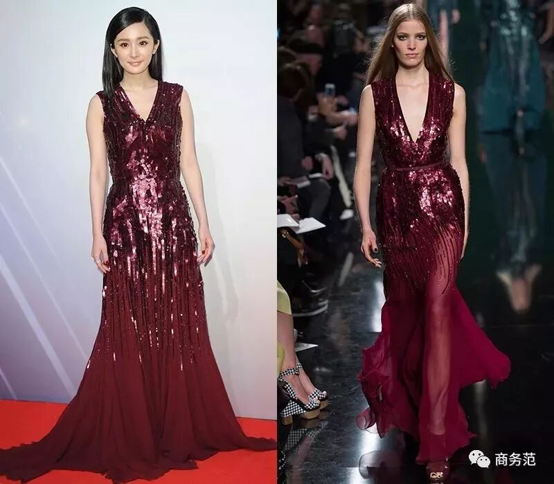 范主前面说过,Bling Bling的材质不容易看出改动痕迹,其实这也和改动的程度有关。如果是碰上杨幂的裁缝,大手一挥把Elie Saab深V的Bling Bling礼服2/3都缝了起来,整体剪裁和线条都大变样,什么样的材质都没辙。