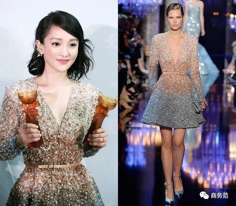 而周迅这件Elie Saab 2014秋冬高定礼服,由于是Bling Bling的款式,因此把领口提高一些不容易看出痕迹,有经改造后,还有点Wrap Dress的效果。