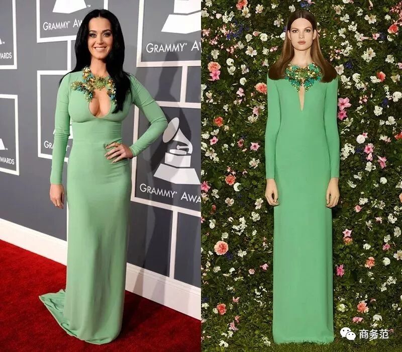 比如某年走格莱美红毯的“水果姐”Katy Perry,硬是把这件有点小端庄的Gucci礼服开叉处改大了几个Size,生怕事业线不够明显……