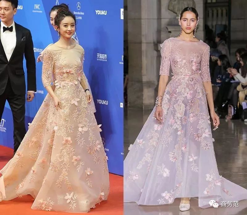 不过比起赵丽颖来,范冰冰只是小巫见大巫。因为赵丽颖把这件Georges Hobeika高定透视礼服,硬生生改成了秋衣既视感。