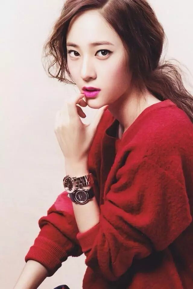 郑秀晶的双眼皮比较浅,极细的眼线和自然卷翘的睫毛,点亮双眼。