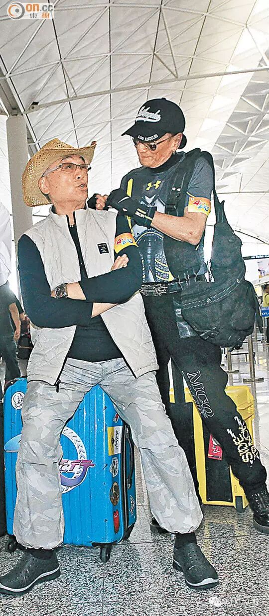 6月15日一行人返港,谢贤自曝:“我推了(指轮椅)曾江几日,还打了他几搥。”曾江笑说:“我会报仇的!”