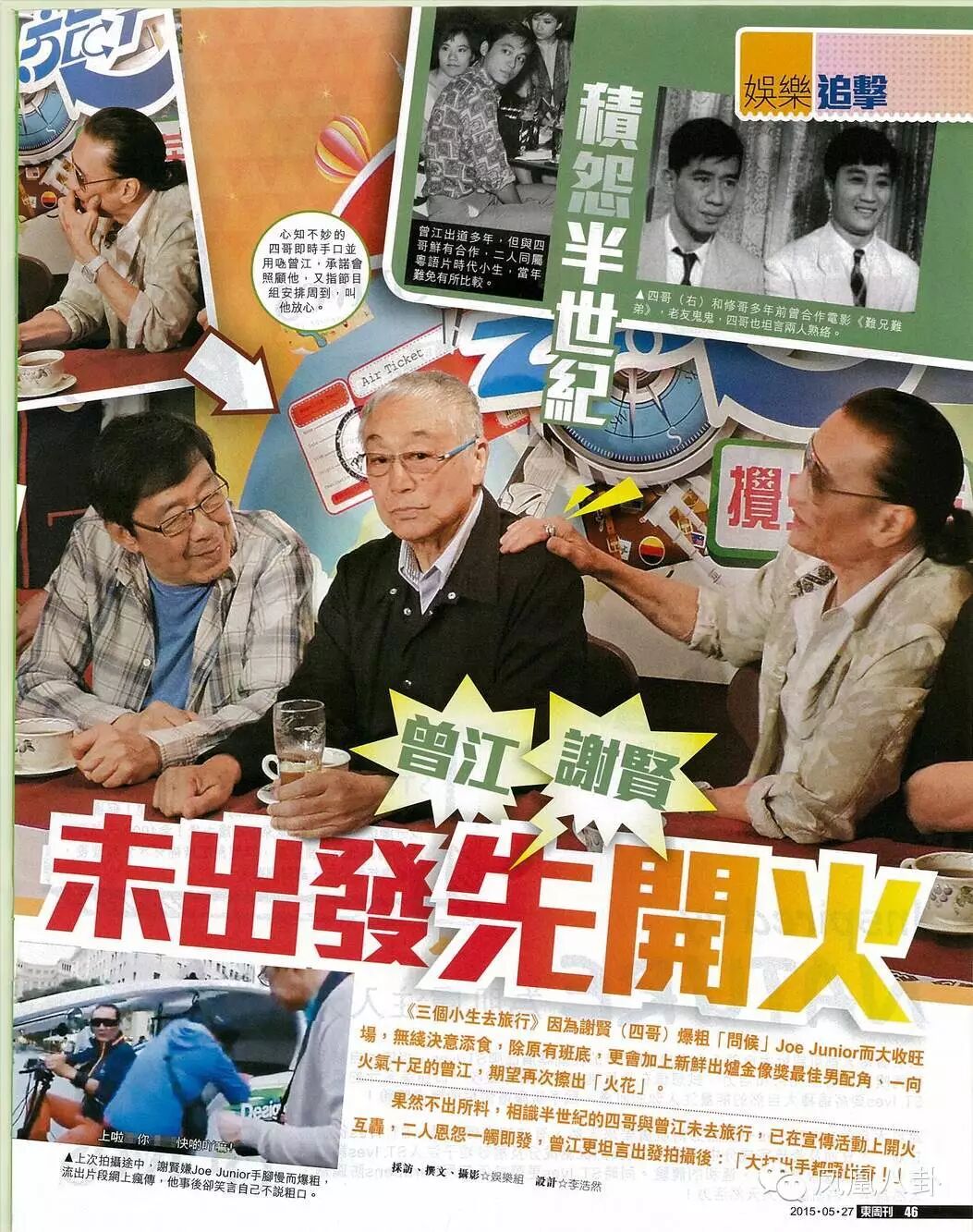 这场精彩大战几天后,香港媒体《东周刊》登了一篇《积怨半世纪!曾江谢贤未出发先开火》的稿子。文中曾江承认与谢贤不和:“我还打得了,到时候大打出手都不出奇。”