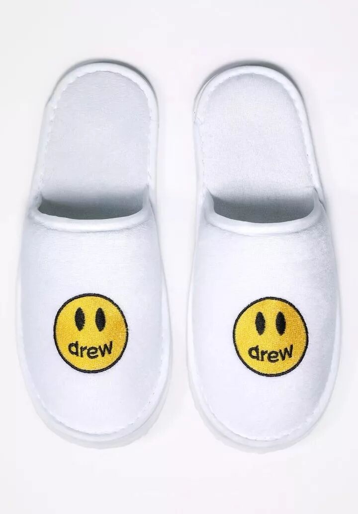 虽然印着一个Drew Huose的品牌黄色笑脸LOGO,但这也还是一双再普通不过的酒店白拖鞋,可是当经过了justin bieber及其女友的强大带货加持之后,这双拖鞋的价格可谓是扶摇直上。