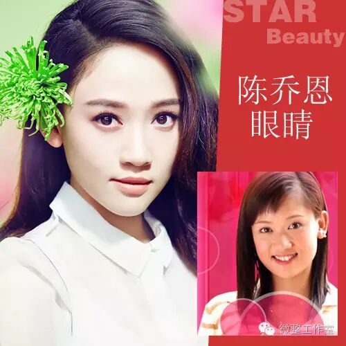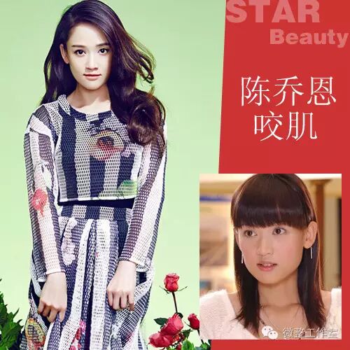 以前的陈乔恩眼睛不大不小,圆圆的很普通,现在却变成了亮闪闪的大眼睛,各种卖