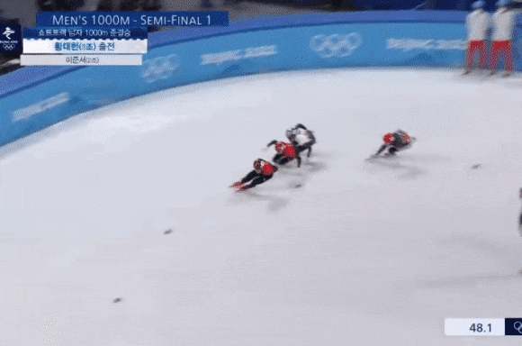 先是2月7日,黄大宪在男子短道速滑1000米的比赛中,和队友李俊瑞互相配合,违规变道。