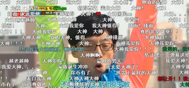随手打开一个关于刘在石的剪辑,都能看到弹幕糊脸。