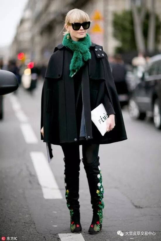 如同披肩一般略大的皮草配饰,像披肩一样穿戴,摇身一变贵妇就差这一件了。