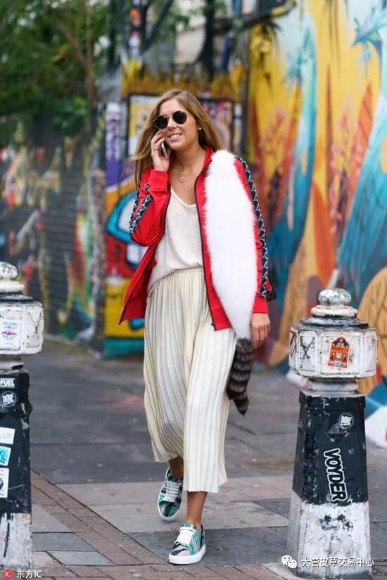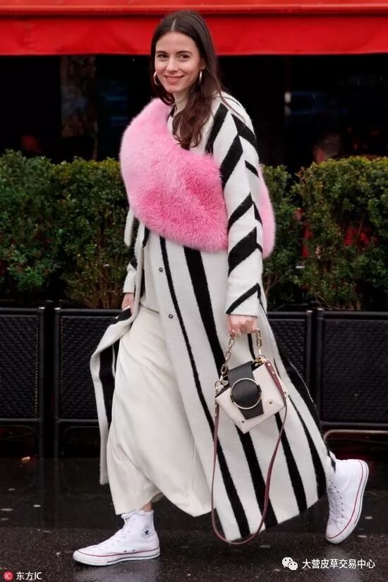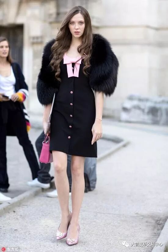 在气温持续走低的当下,不少小仙女还是舍弃不了单薄的连衣裙,这时候加一件皮草配饰绝对保障了温度,还转身遇见小华丽。