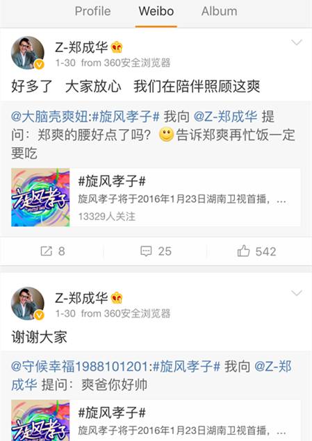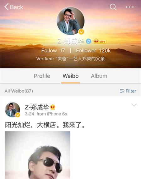 郑爽爸爸也在一月开通了自己的微博,与粉丝各种互动,目前粉丝数已经达到了12万。