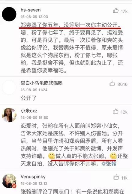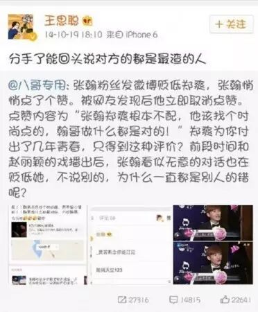 时间回到两年前,塘主张翰和郑爽分手的时候,也被大骂“渣男”,和古力娜扎爆出恋情的时候,更被网友骂成“婊子被狗”。连国民老公王思聪也跑出来指责张翰。
