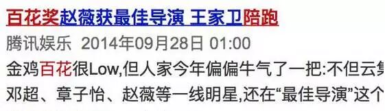 2014年百花奖,赵薇凭《致青春》击败王家卫、陈可辛等,拿下最佳导演。