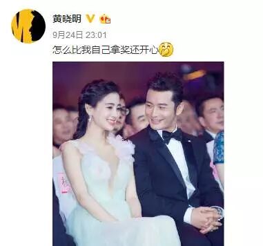 在Angelababy拿奖后,黄晓明发微博称比自己拿奖还开心,八姐真是忍不住笑了,这两夫妻真是好配。