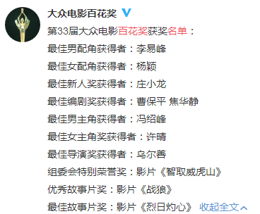 首先要恭喜李易峰,他成功击败了威尼斯影帝夏雨,金爵奖影帝段奕宏,金鸡奖最佳男配张译,获得了演员生涯中第一个表演奖。