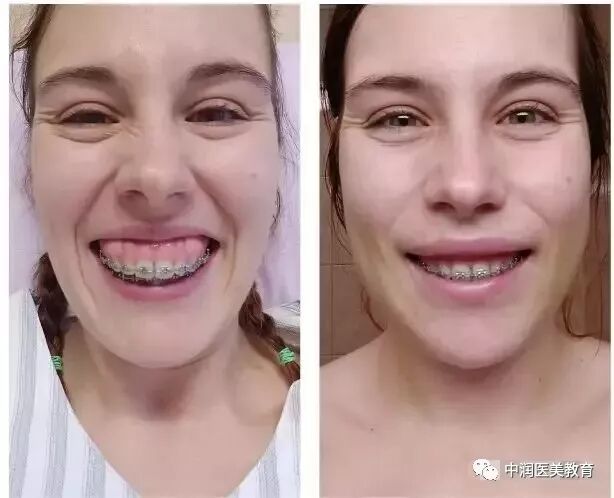 笑的时候,面部的一些肌肉过于兴奋,导致上嘴唇的位置太靠上。
