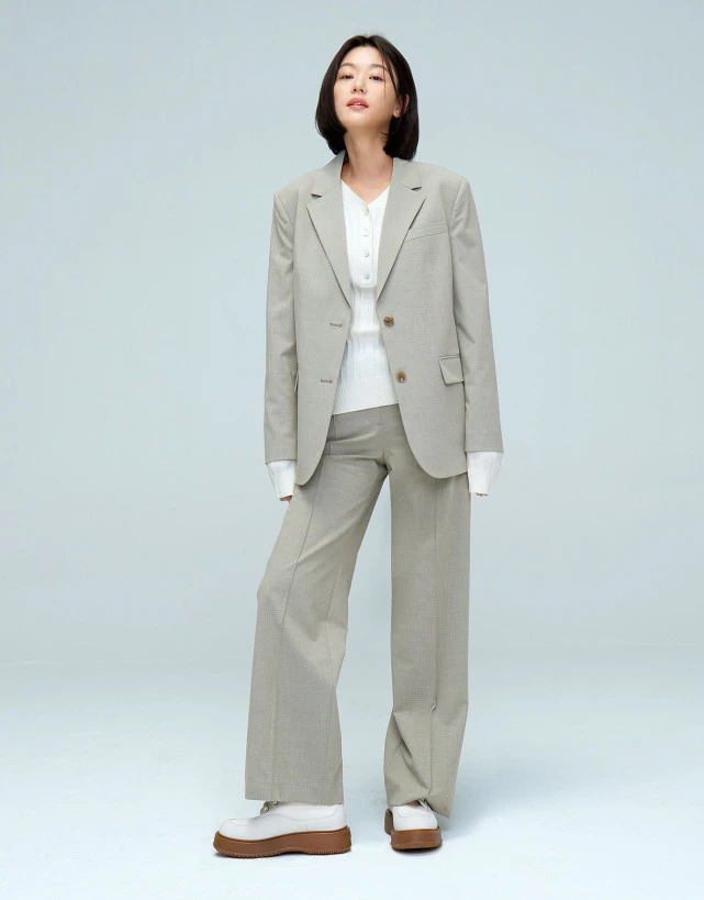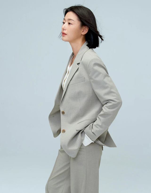 全智贤身上的这一套廓形西装搭配就非常值得借鉴,在整个设计中,她让西装成套出现,避免了很多搭配烦恼,轻松营造出简约的视觉效果,而且上下装色彩风格都保持一致性,搭配起来也更容易凸显出和谐感。