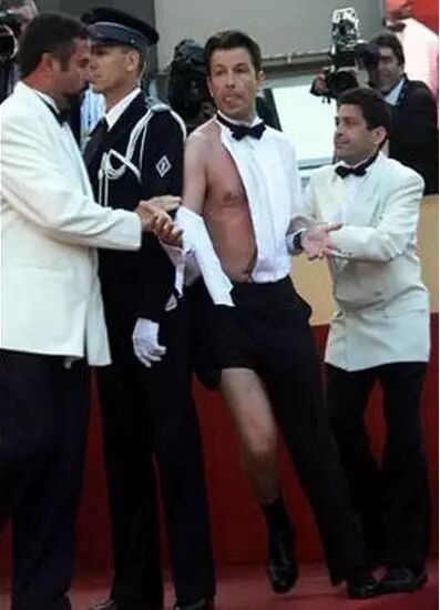 在第55届戛纳国际电影节上,精心装饰一番的法国电视喜剧演员达恩·博伦德准备参加一部影片的展映仪式,本想成为全场焦点,不料玩笑开大,竟然半裸出场,随后被保安人员迅速“请”出会场。