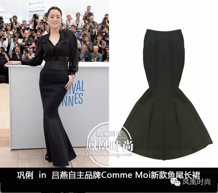 2014年5月12日,巩俐身着吕燕自主品牌Comme Moi鱼尾裙出席第67届戛纳电影节《归来》记者会