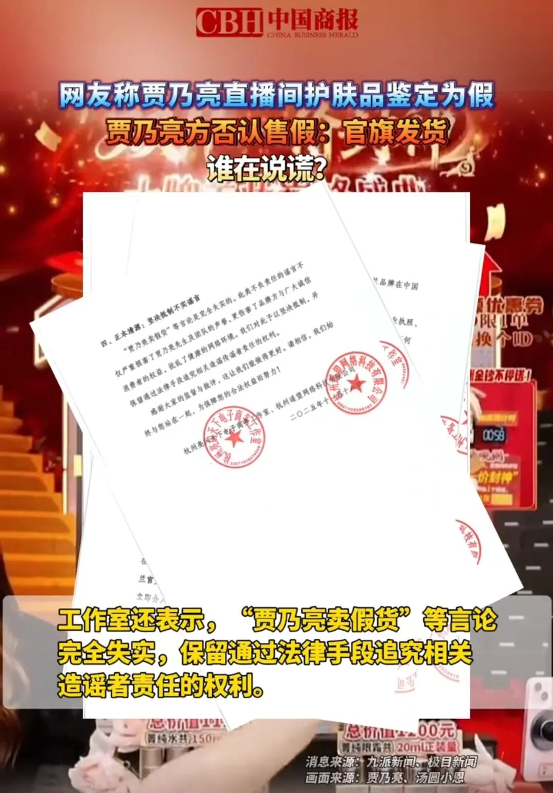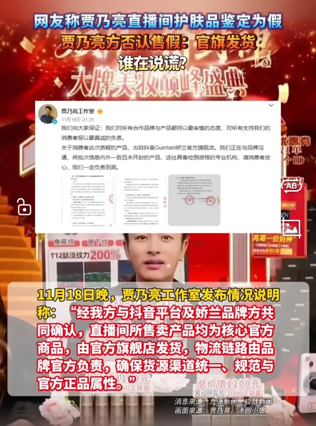 贾乃亮工作室发布声明,强调“售假说法完全失实”,并保留追究造谣者法律责任的权利。