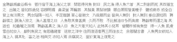 名为金聃龄的县令赴任途中在一渔夫家借宿借食。县令问口中所食为何肉,渔夫答道:“是每个百姓都能钓到的人鱼。共捕到6只,其中2只被扎死,其余4只还活着。”县令出门看,人鱼容貌十分漂亮,抱膝而坐与常人无二致。见人鱼垂泪,县令于心不忍,请渔夫放生。而渔夫觉得人鱼味美,不易腐坏,不愿放生。县令气急之下抢来放入大海,目送人鱼在大海中消失不见。