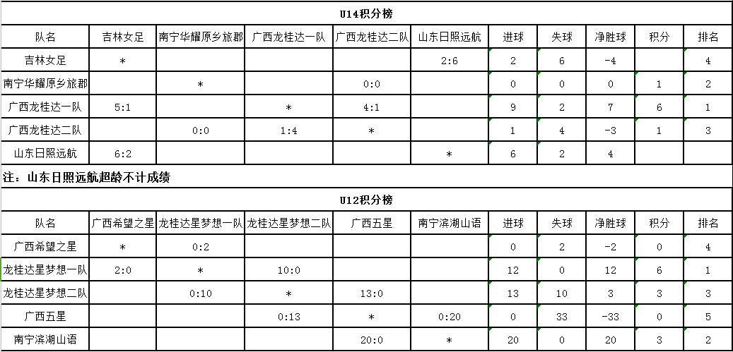 场序1:龙桂达星梦想二队0:10龙桂达星梦想一队