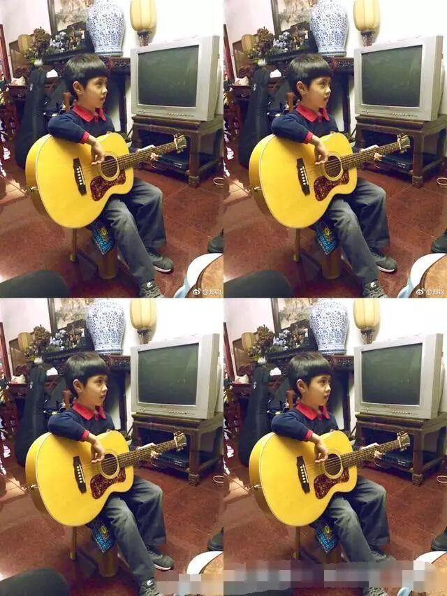 长大的jagger愈加帅气继承了老爸的音乐天赋,吉他弹得很不错嘛!