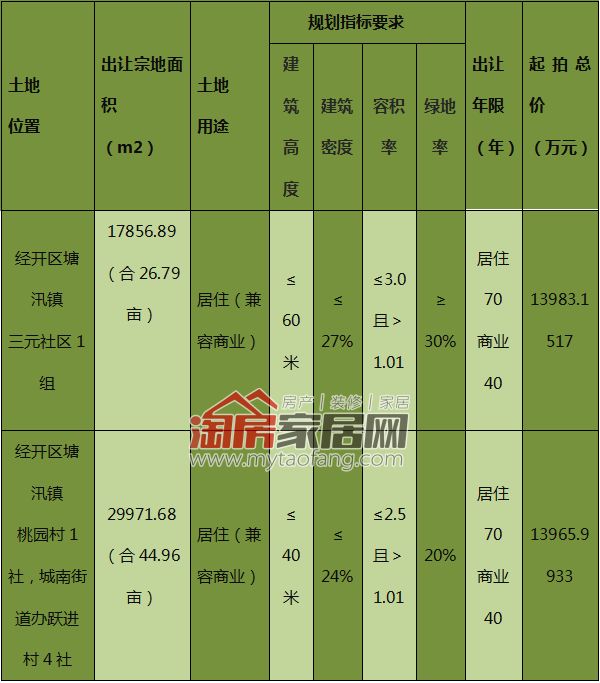 绵国土资公告[2018]177号的文件中,这两宗土地的基本情况和规划指标要求见下表: