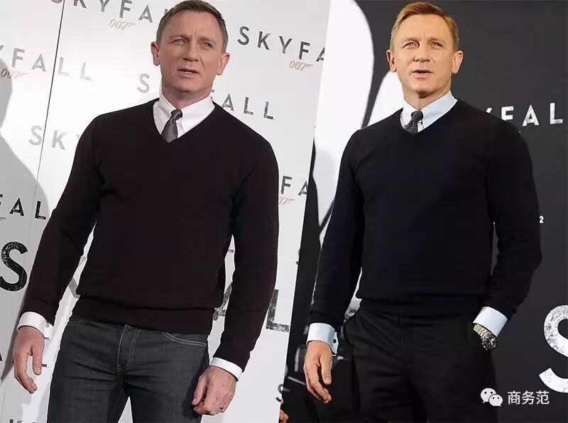 007的扮演者丹尼尔·克雷格,曾在影片宣传期间穿过John Smedley的鸡心领针织衫↓