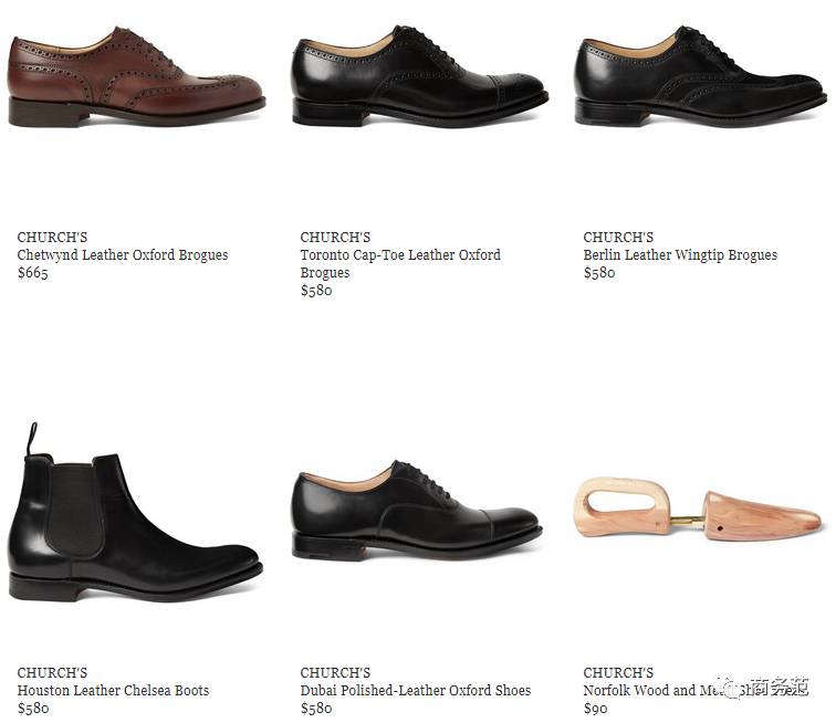 Church's成熟经典的风格非常适合各种商务男士,海淘价位约5000人民币左右↓