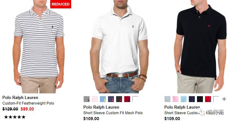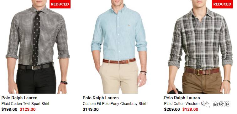 Polo Ralph Lauren的官网上,专为男士列出了“休闲衬衫”的快速通道。售价在100美元(不到700人民币)左右的马球Logo衬衫及Polo衫,既宽松又舒适↓