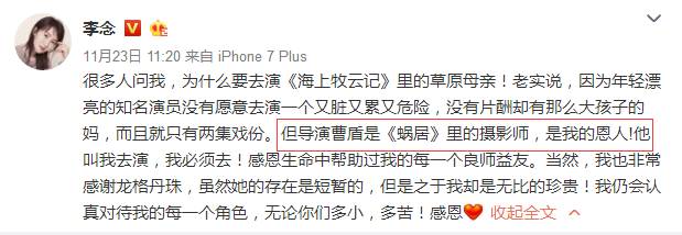 李念这种常怀感恩之心的状态还真的值得我们每一个人学习,一个人不管你的身份地位如何,对于曾经帮助过自己的人一定要心怀感激之情。