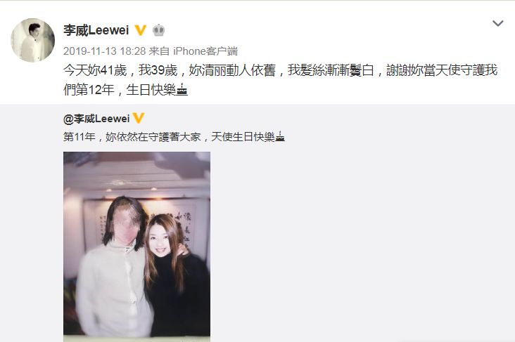 不过李威倒是有一个坚持了12年的暖心举动,每年在他车祸去世的前女友许玮伦生日的时候,他会发文纪念,从不间断。
