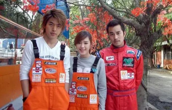 和刚出道的张孝全演赛车电影《极速传说》,中间那位漂亮的蔡斐琳后来因为涉毒,也是成了失踪人口。