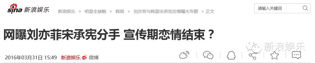 有的恋情来的突然,被曝分手也很突然!对,我说的就是刘亦菲和宋承宪。