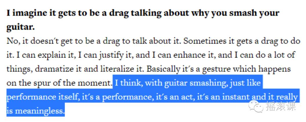 大意:60年代中期,The Who的吉他手皮特汤森是第一位摔吉他的摇滚艺人