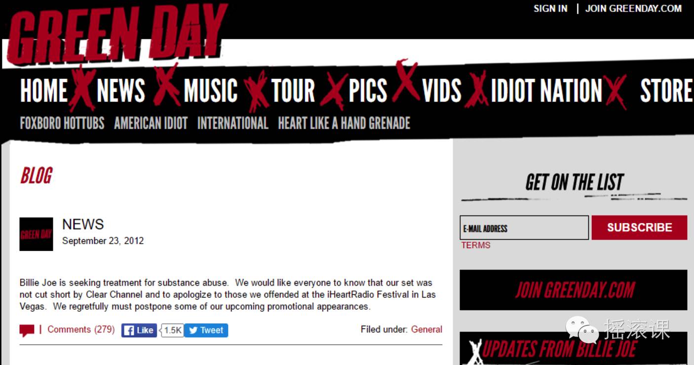 What???你是不是觉得比利乔(Billie Joe)砸吉他屌哦,怒斥主办方哦,不屈服于势力哦,看得自己都要高潮了哦!?但是事实是当天绿日的演出因为之前亚瑟(Usher)演出而延迟了接近25分钟才开始,但是主办方并没有因此而缩短了绿日的表演。绿日按计划起码演出了30分钟,演唱了7首歌曲(非摇滚客所说的3首)。第7首唱到一半时,主场比利觉得不爽,想唱新专辑里的新歌但又时间不够,加上自己嗑药了,以及现场观众情绪不高,所以大发雷霆砸了吉他并离场。那么在他这个行为是否是所谓的朋克态度,或者说值得宣扬的行为?绿日官方在该事件之后发布声明,对此事表达歉意: