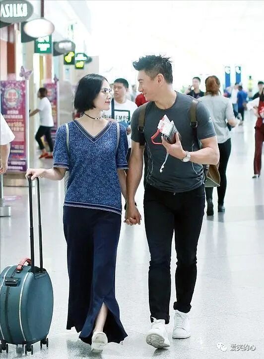 吴奇隆,刘诗诗,手牵手走到机场。女人像女孩一样穿休闲装,而男人穿紧身t恤来展示胸肌