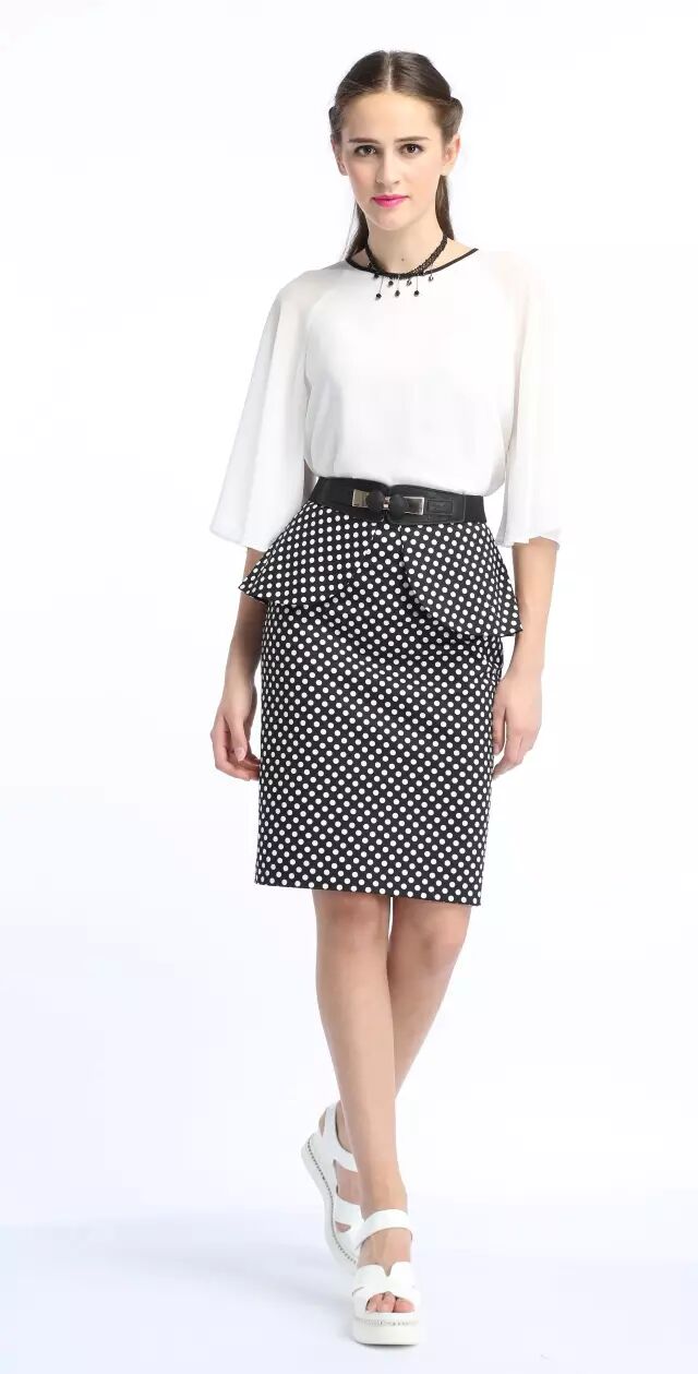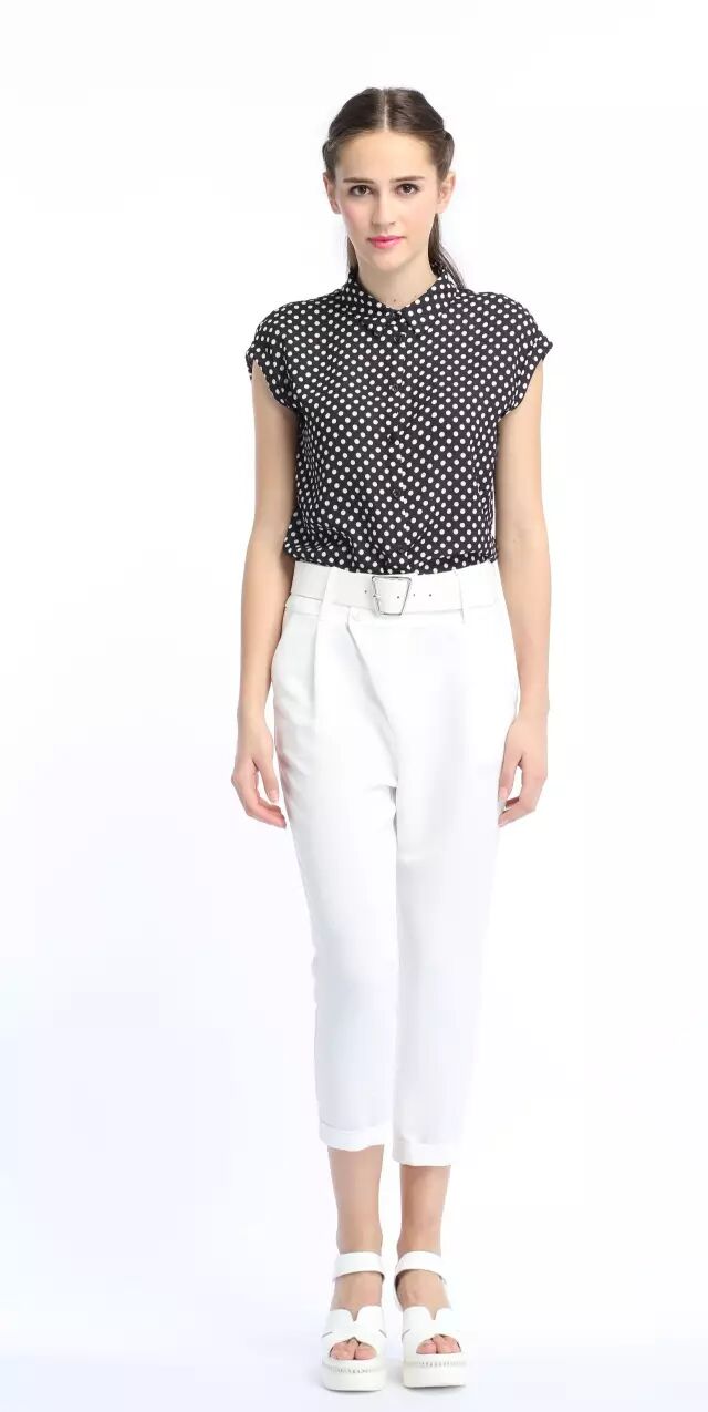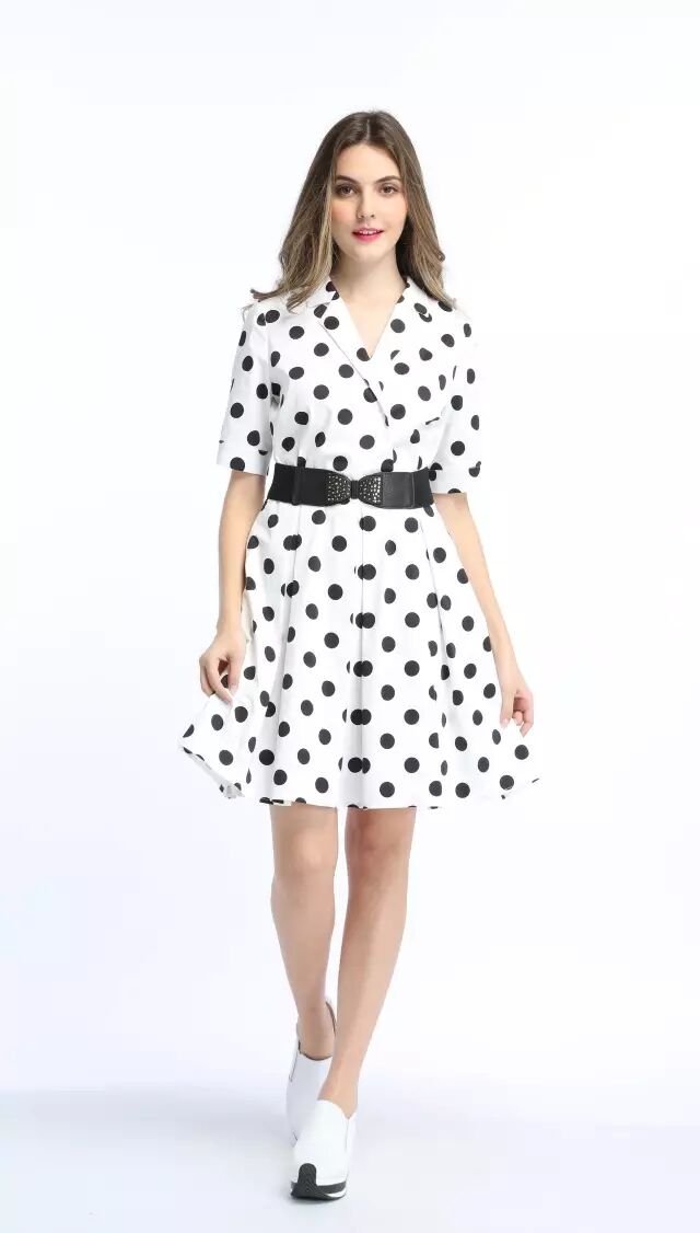 圆点+黑白色,最为经典简单的穿搭方式。不论是连衣裙,还是小衬衫、半裙亦或长裤,黑白圆点都会带来较强烈的视觉冲击感,摩登复古,引人侧目。
