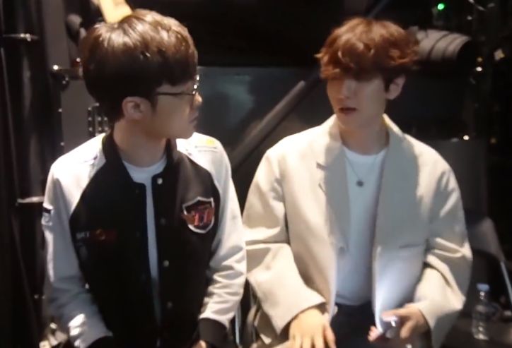 但是很显然,边伯贤还没有准备好对自己的偶想说点啥,两个人就那么沉默着……而在视频里,伯贤表示,当时他心想着要找Faker要手机号,然后找他玩游戏。