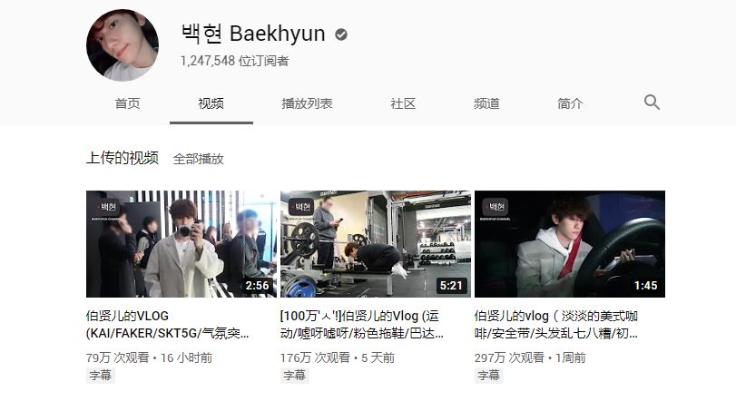 上半年EXO估计是太“闲”了,边伯贤就自己在油管开了频道“백현 Baekhyun”,开开心心地当上了YouTuber。