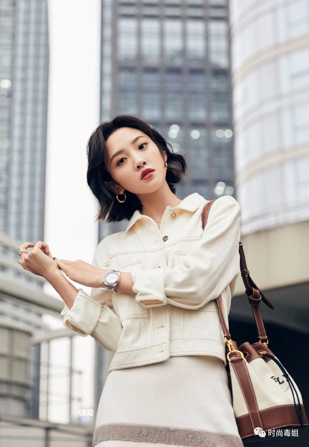 配饰上,金属质感的耳饰点缀其间,齐肩的短发经过精心的打理,刚好让耳饰展露出来,时髦又精致,让唐艺昕整体的造型更加吸引眼球。唐艺昕穿梭于楼宇间,落落大方,优雅得体,整个一文艺清新范儿十足!